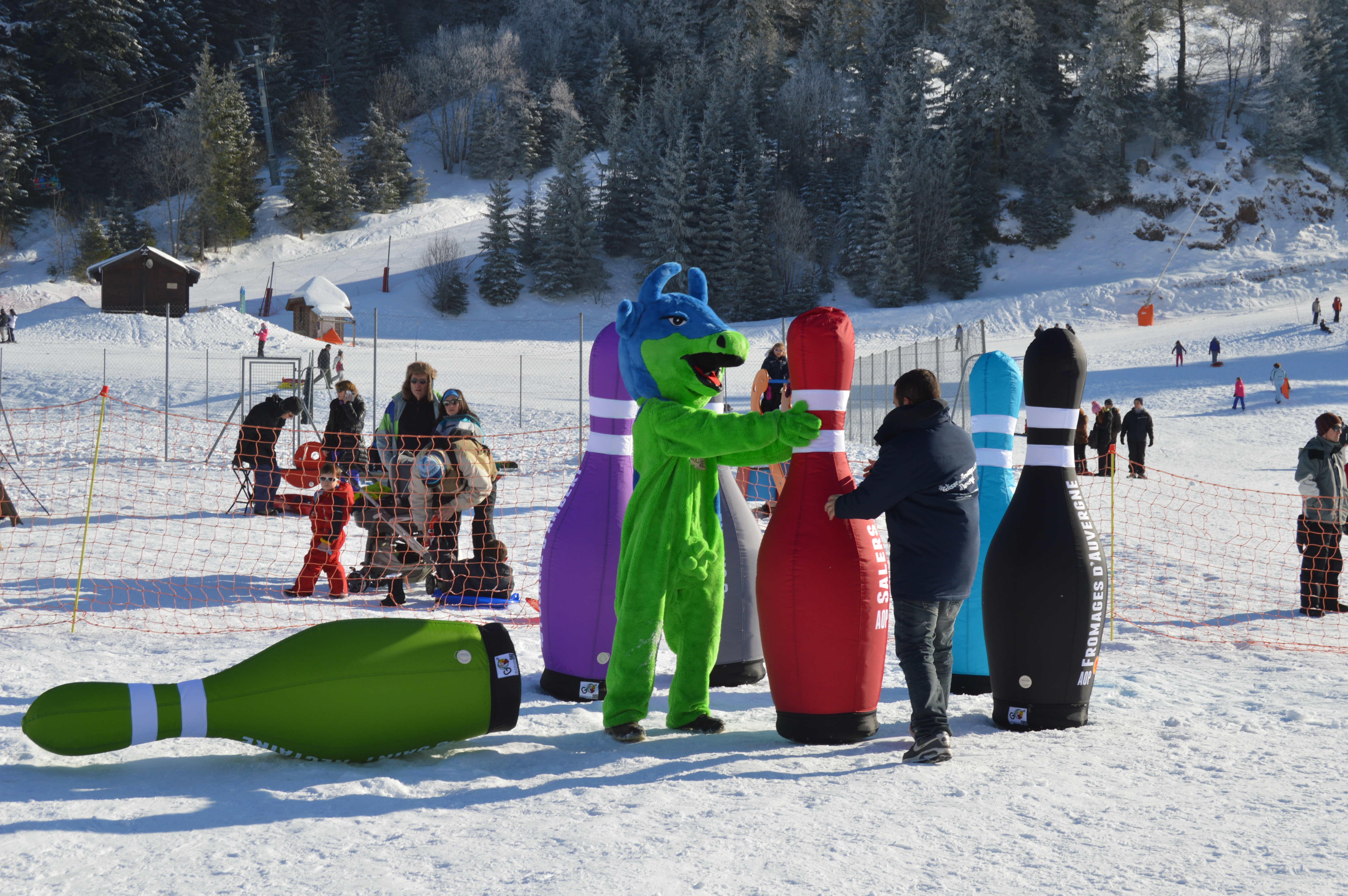En exclusivité sur les pistes de ski du Massif Central, venez tester notre jeu de bowling à taille humaine. Grimpez dans une bulle gonflable et tentez de dégommer les quilles à l’effigie de vos fromages préférés. Un max de sensations et de fun !
